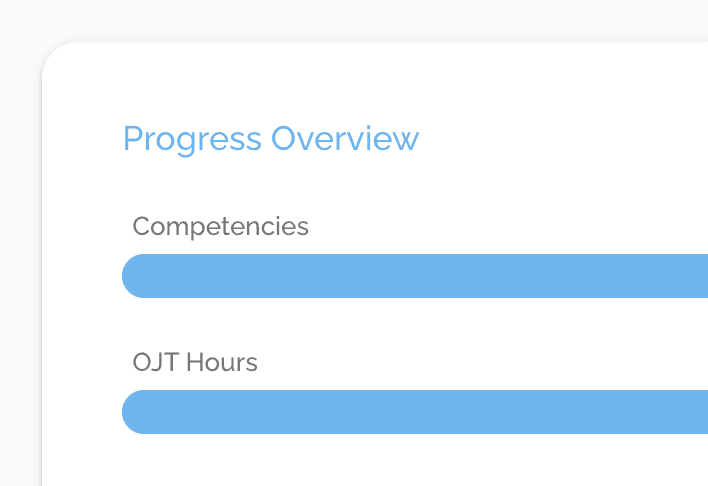 Get a live view of every apprentice's OJT progress from one centralized dashboard. See who's on pace, who's falling behind, and where bottlenecks are forming — without pulling a single report. Real-time visibility means you can intervene early, keep apprentices on track, and stay audit-ready at all times.